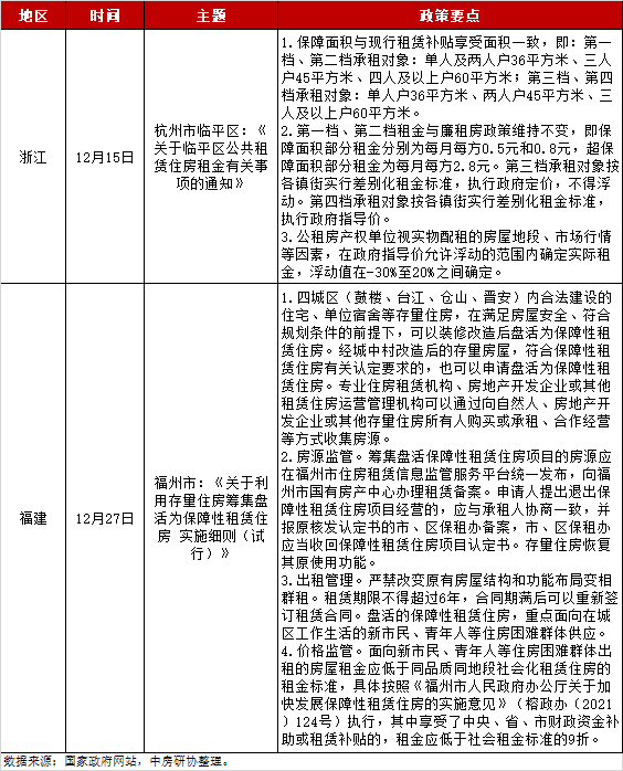 地方层面,本月地方出台房地产调控政策67条,连续三个月减少。其中,宽松性政策56条,中性政策4条,紧缩性政策7条。总的来看,京沪住房信贷政策再优化,进一步向市场释放积极信号,二三线城市则以加大住房公积金支持、推行房票安置、加大购房财税补贴力度等需求侧政策支持为主。本期报告主要对12月房地产行业政策进行梳理,并作解析。