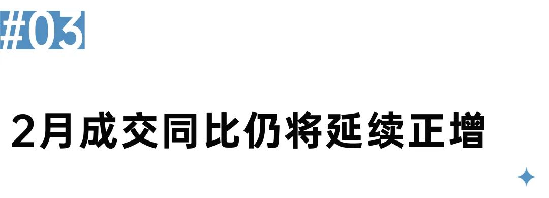 实际上,去年9月以来在“止跌回稳”的政策支持下,百城新房成交四季度出现止跌的积极信号,进入2025年延续止跌回稳,CRIC监测数据,1月30个重点城市整体成交927万平方米,环比下降53%,同比转正微增1%,绝对量水平显著超去年春节月,另外考虑到供应端延续“提质缩量”,预计2月成交同比仍将延续正增态势。